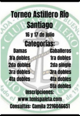 Tenemos el agrado de dirigirnos ustedes a fin de invitarlos a la primera etapa del Torneo Club Astillero Río Santiago de Tenis con Paleta, bajo la fiscalización de la CATP que se realizará los días 16 y 17 de Julio del corriente año. Tendrá como sede principal el Club Astillero Río Santiago ubicado en la calle Horacio Cestino N° 774 entre las calles Quintana y Moreno, en la ciudad de Ensenada. Esperamos contar con su presencia. Sin otro particular y a la espera de ustedes en nuestro torneo, saludamos muy atentamente.